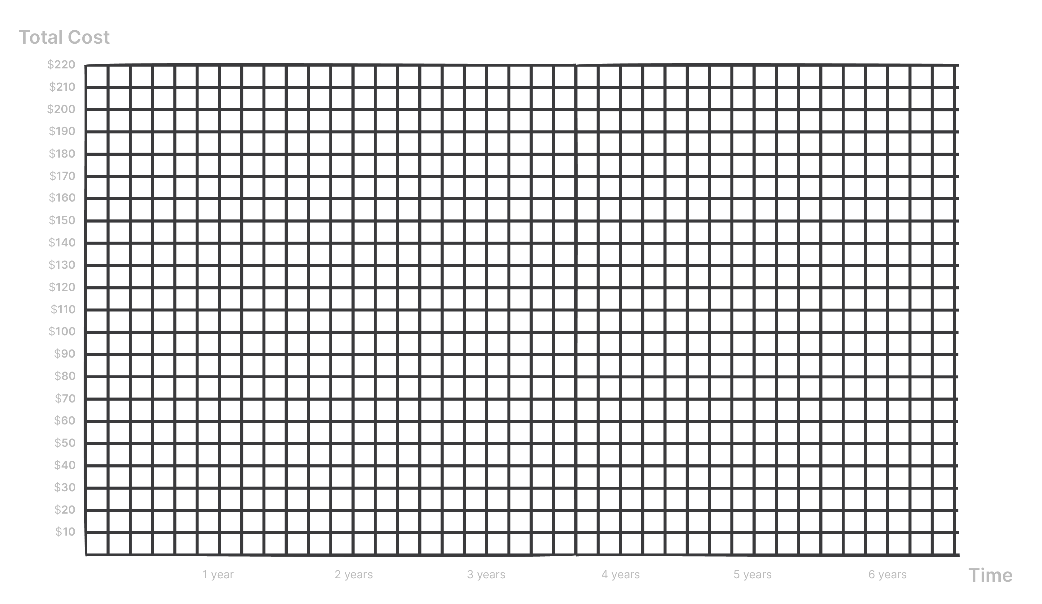 The following chart compares the cost of storing 16 GB of data over time. It assumes that monthly costs from traditional cloud providers will remain constant. ArDrive's cost may initially be higher but will provide substantive savings over time.